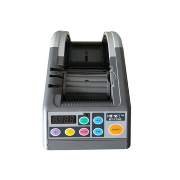 INFINITE™ RT-7700 Heavy-duty Programmable Tape Dispenser applicable to 6mm up to 60mm tape width size is an industrial grade automatic tape dispensing machine. This program-controlled tape dispenser equipment is usable with various adhesive tape materials like Filament, Acetate Cloth, Glass Cloth, Double-Sided, Normex, Pre-Stick, Cellophane, Craft, Masking, Plastic, etc. INFINITE™ RT-7700 high-quality adhesive tape dispenser machine cutting width is from 6mm up to 60mm, while its cutting length capacity is from 5mm- 999mm (± 1mm). INFINITE™ RT-7700 industrial use auto tape dispenser is capable of loading any tape inner core size and the outer tape diameter that you can load to this tape dispensing equipment is up to 300mm. Infinite Automation Co., Ltd . is a worldwide distributor of high-quality tabletop tape dispensing machines.